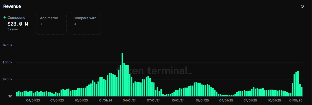 Source:tokenterminal ,https://tokenterminal.com/explorer/projects/compound