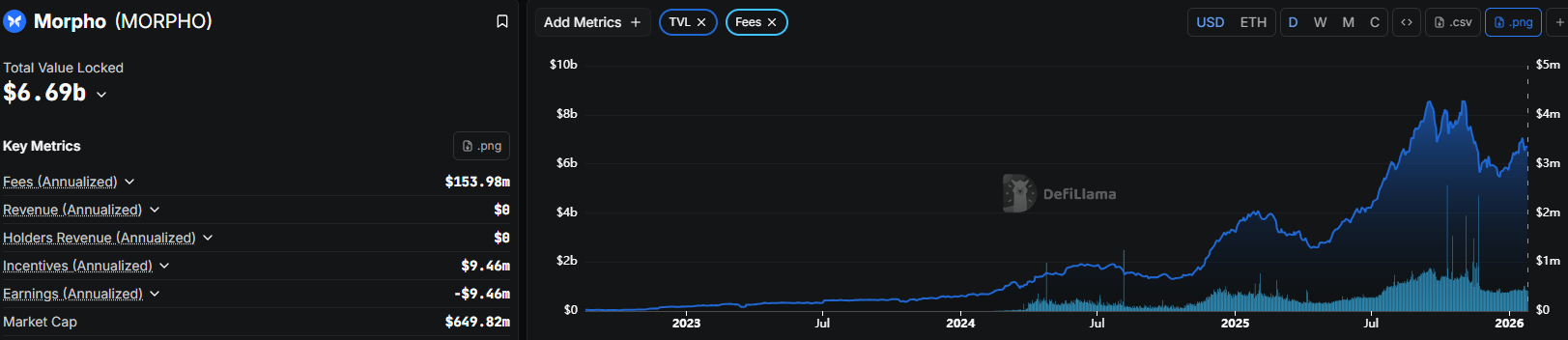 Source:tokenterminal ,https://tokenterminal.com/explorer/projects/morpho/metrics/fees