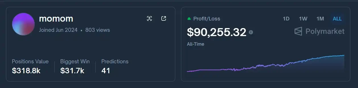 - 分析推测账户“momom”可能属于Vitalik,其交易逻辑高度一致:超7成交易押注事件不会发生,且避开币价、体育等板块。