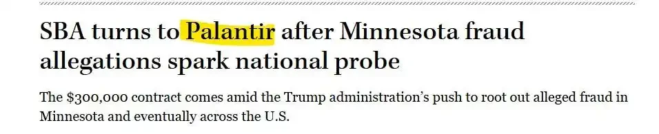 在此背景下,SBA 引入 Palantir,并明确表示:调查将从单一州扩展至全国,作为一项「零容忍」的系统性反欺诈行动。