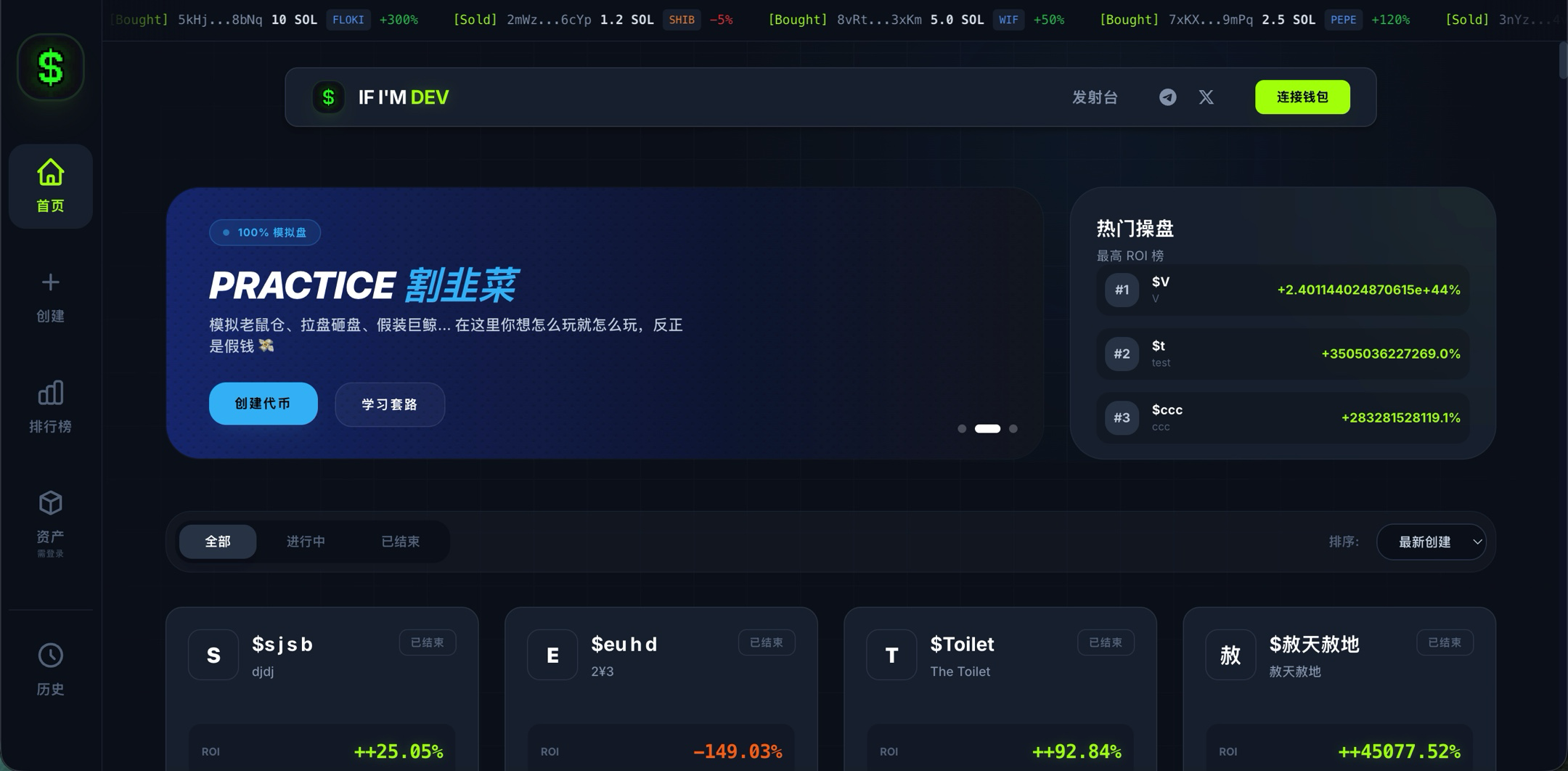 项目介绍:一款以「假如你是项目 DEV」为视角的 K 线博弈模拟器,在 100% 模拟、零真实风险的环境下,体验从拉盘、砸盘到清仓的完整操盘过程。