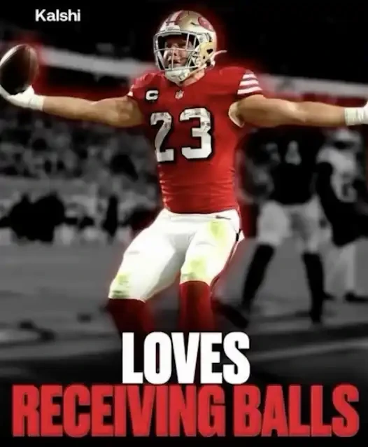 在体育领域,这种策略表现为恶搞式地模仿体育官宣卡片,也就是你常在 ESPN 或 FOX Sports 账号上看到的那种,用来宣布交易、选秀或伤病消息的图片。两家平台用博眼球的玩笑标题来「播报」体育新闻,比如 Polymarket 的「DICK IS GROWING」,影射多伦多猛龙队球员 Gradey Dick 体重增加;又比如 Kalshi 的「LOVES RECEIVING BALLS」,指的是旧金山 49 人队跑卫 Christian McCaffrey,说他「喜欢接球」,你也懂的,就是字面意义上的那种「接传球」。