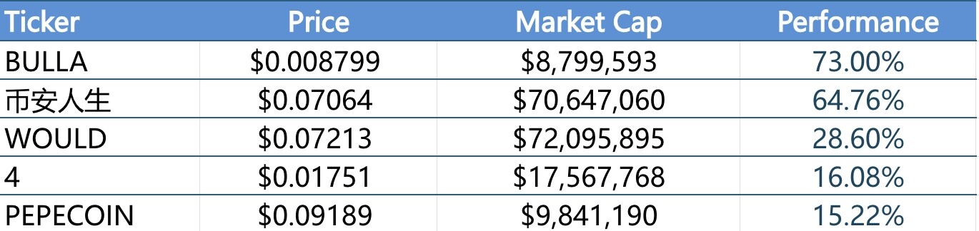过去一周内涨幅前五的 Meme 币