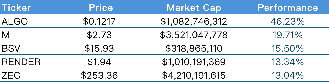 1.本周涨幅前五的 VC 币和 Meme 币