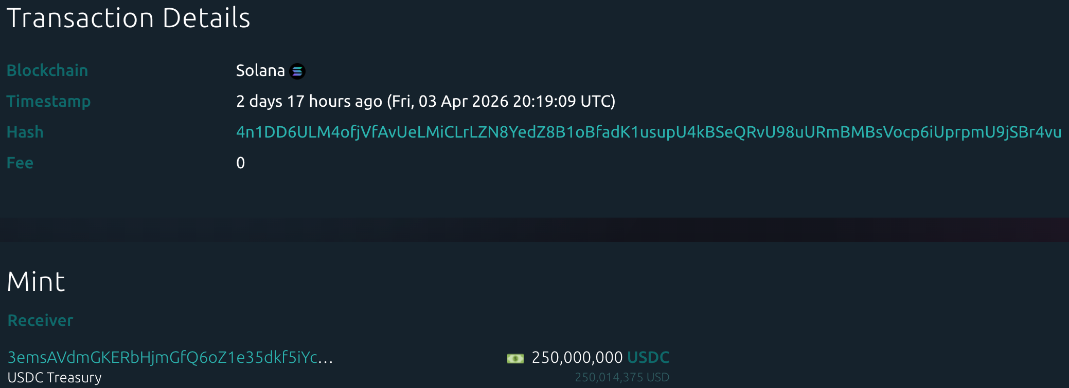 据 Whale Alert 数据显示,本周 USDC Treasury 总计增发 29.48 亿枚 USDC,Tether Treasury 本周总计无增发 USDT。本周稳定币增发总量为 29.48 亿枚,较上周稳定币增发总量(24.00 亿枚)上升 22.83%。
