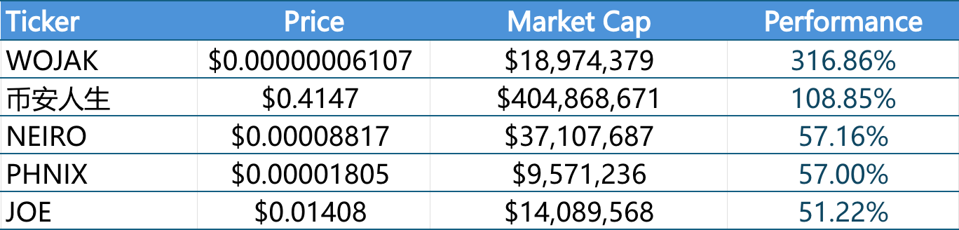 日活跃地址与 TVL:日活跃地址反应了公链的生态参与度和用户粘性,TVL 反应了用户对平台的信任程度。日活跃地址方面。仅 BNB Chain(275 万个,+10.44%)、Sui(29.4 万个,+0.14%)实现涨幅;其余链均下跌,分别为 Solana(221 万个,-45.92%)、Ethereum(47.3 万个,-19.35%)、Aptos(110 万个,-19.08%)和 Ton(11.9 万个,-6.68%)。TVL 方面,Ethereum($47.26B)、Ton($0.058B)和 Sui($0.55B)分别下跌 11.47%、4.26%和 3.51%;其余链包括 Solana、BNB Chain、Aptos 实现约 1%-2%小幅上涨。