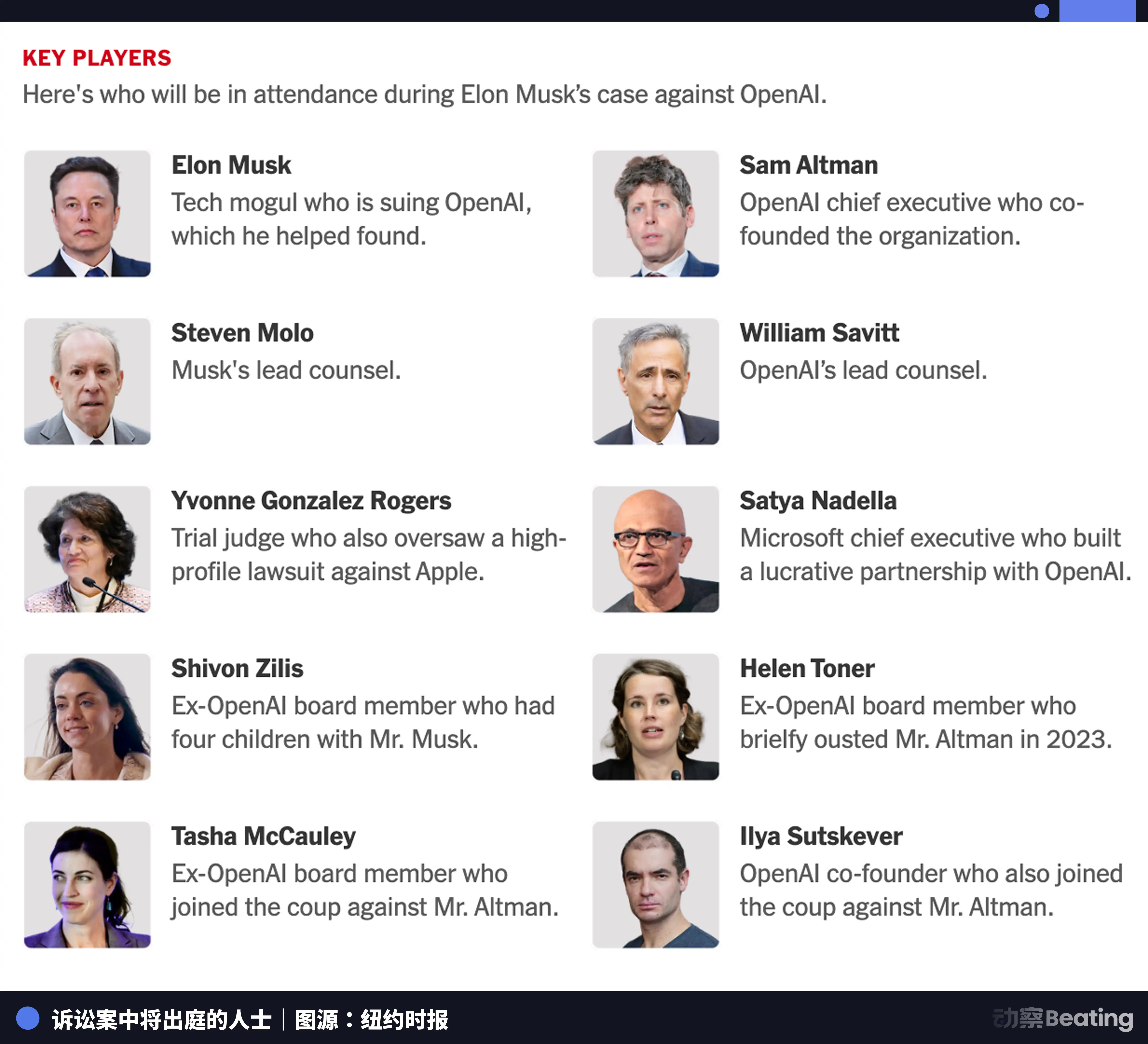 - 案件揭示硅谷复杂利益关系:前OpenAI董事兼马斯克孩子母亲齐利斯,被指为马斯克安插的内线,凸显商业竞争与私人情感的纠缠。