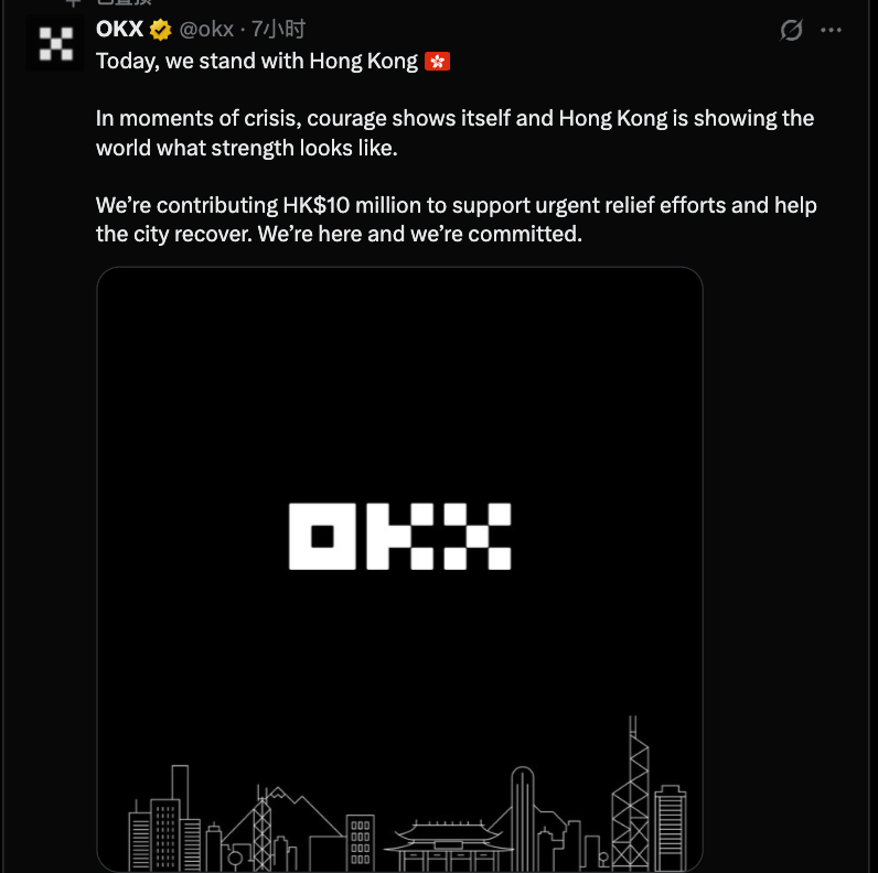 OKX向香港捐款1000萬港幣,支持緊急救援與復原工作