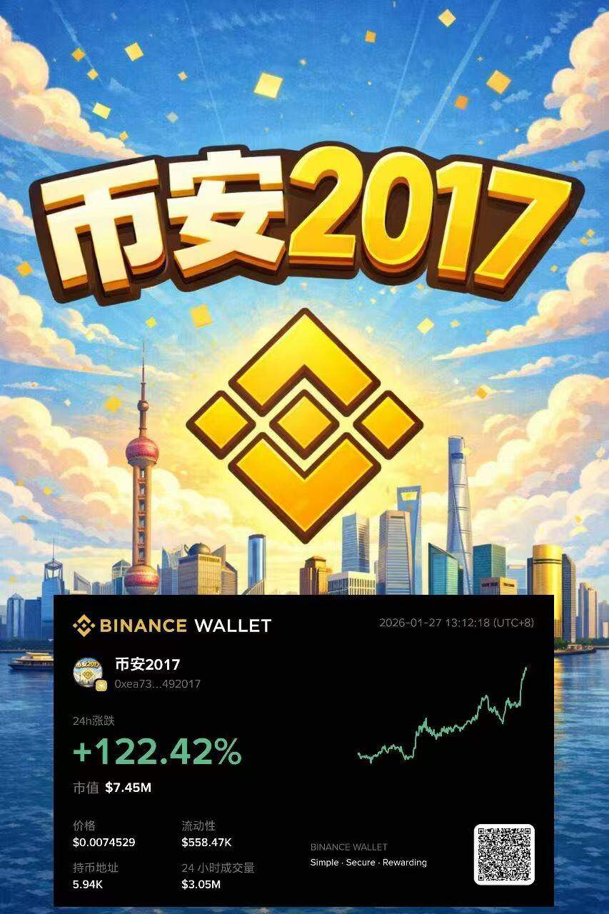 某新錢包轉入30萬美元持續買入「幣安2017」,倉位浮盈超50%