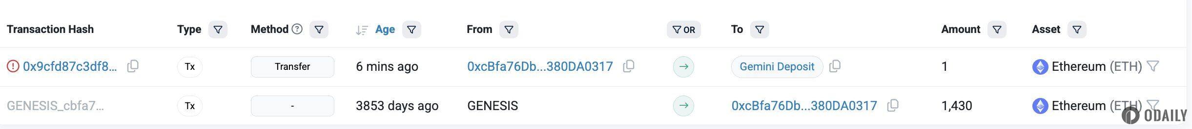 Odaily訊 據鏈上數據,一名 ETH 早期投資者在休眠 10.6 年後甦醒,並試圖將 1 枚 ETH 轉移至 Gemini,但交易失敗。其在 ICO 期間用 443 美元投資的 1430 枚 ETH 現價值 281 萬美元,回報達 6335 倍。