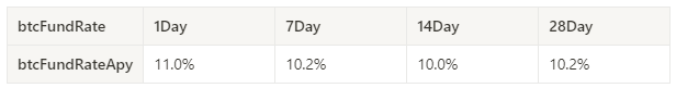 過去一週BTC 資費平均年化收益為10.2% ,合約槓桿情緒持續在低點。
