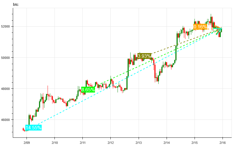 BTC 在CPI 數據公佈短暫下跌後向上突破50000 大關