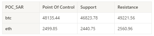 表格顯示BTC 與ETH 過去一週每週的密集成交區間