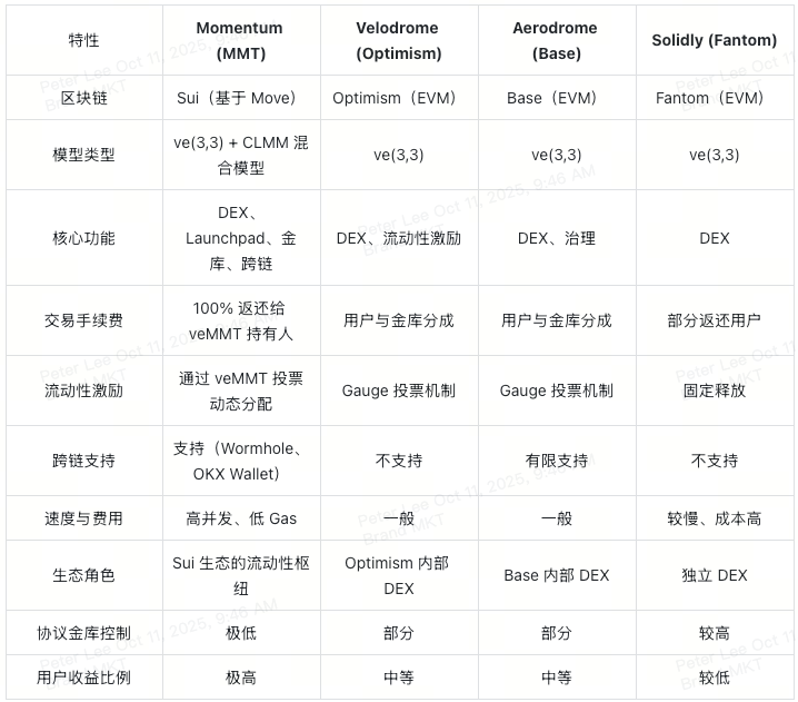 比較分析:Momentum 與其他ve(3,3) DEX 協議