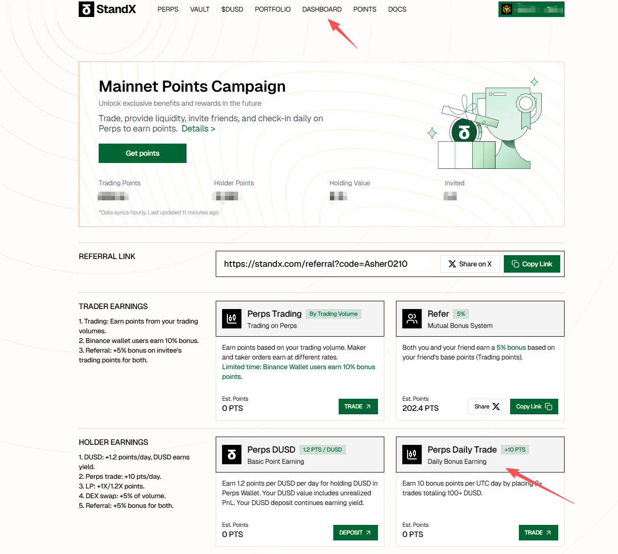 12 月10 日, StandX 在X 平台發文宣布交易積分活動已在主線上線。用戶可以透過將DUSD 存入Perps Wallet、Vaults 或積極參與交易來獲取積分。這項活動與幣安錢包合作,使用Binance Wallet 的無私鑰擴展錢包的用戶將獲得10% 的積分加成,該加成持續4 週,直至2026 年1 月7 日。此外,積分將進行回溯,獎勵主網上線以來的所有過往交易。