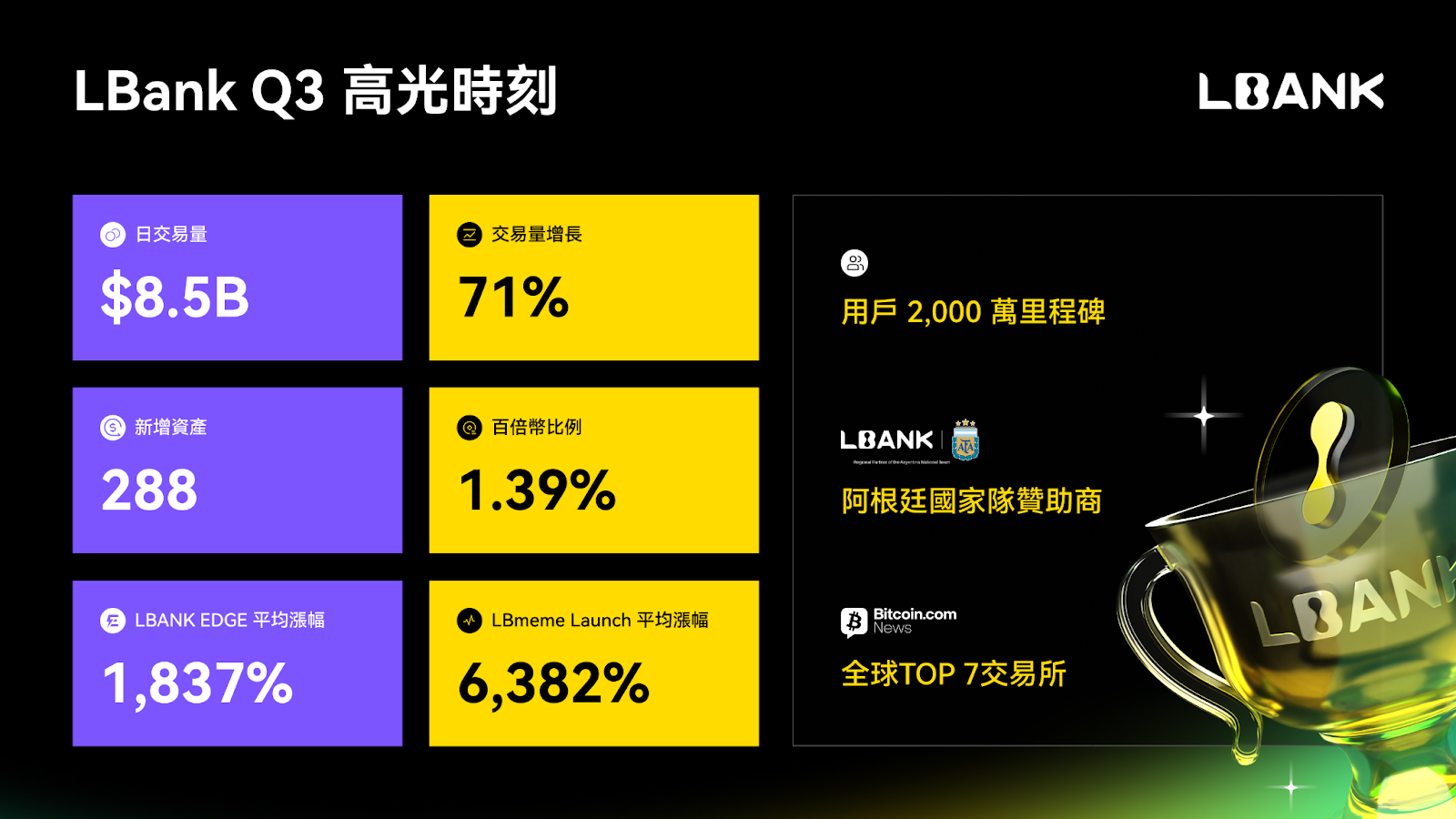 體育行銷:攜手阿根廷國家隊。 2025年9月,LBank宣布與阿根廷足球協會(AFA)達成多年度合作,成為阿根廷國家隊官方區域贊助商。作為新科世界盃冠軍的合作夥伴,LBank旨在藉助阿根廷隊在全球的龐大球迷基礎,將加密貨幣帶入主流視野。這項跨界合作被視為體育與數位金融融合的里程碑。 LBank管理層表示,希望透過足球這項「世界語言」來降低大眾了解並接受加密的門檻。合作達成後,LBank迅速展開大規模市場活動:推出1億美元獎勵計畫慶祝贊助,包括新用戶註冊贈金、充值贈送等一系列激勵,吸引了全球海量用戶參與。根據統計,光是第三季LBank就因此投入了超1.17億美元的各類用戶獎勵,舉辦了數十場空投和交易競賽,大大提升了平台活躍度。透過頂級足球IP,LBank成功將品牌形象滲透到運動迷和新興市場用戶群中,不僅擴大了拉丁美洲等地區的用戶覆蓋,也強化了自身「主流化、國際化」的品牌認知。