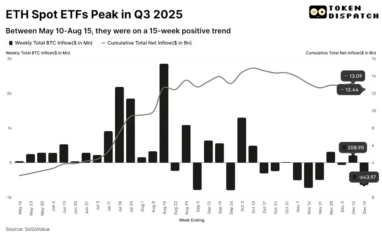 2025 年6 月1 日至9 月30 日期間,ETH ETF 的累計資金流入規模成長近五倍,突破100 億美元大關。