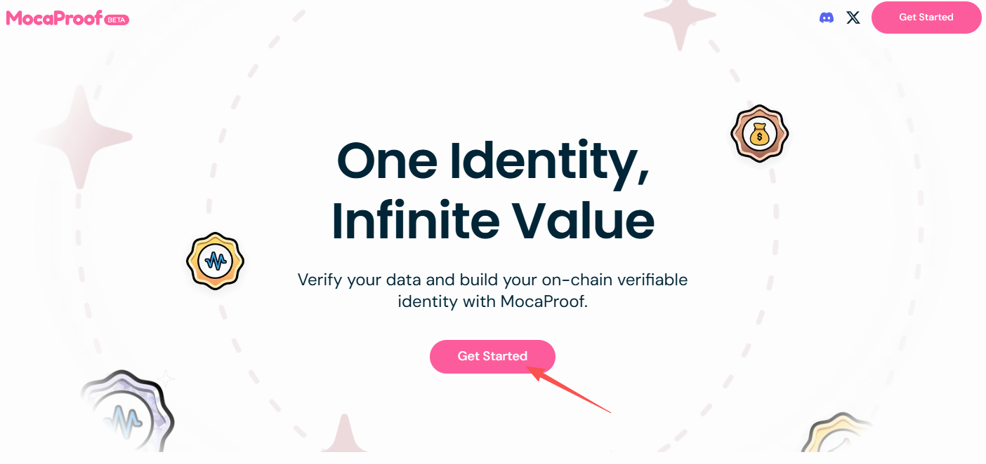 STEP 1. 進入互動官網(連結: https://app.moca.network/ ),點選「Get Started」後透過Google信箱進行帳號註冊。
