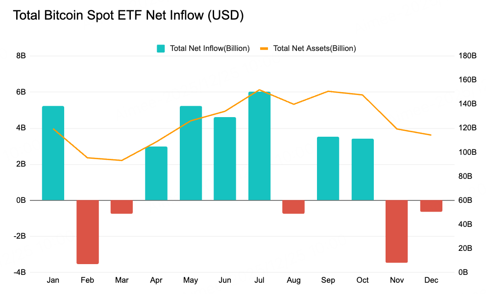 整體而言,2025年BTC現貨ETF的流通變化主要受美國宏觀週期與市場波動驅動:降息預期決定中期方向,關稅與財政風險放大波動,而極端事件加速去風險,顯示比特幣雖已進入機構配置體系,但仍處於由高波動資產向穩定宏觀配置資產過渡的階段。