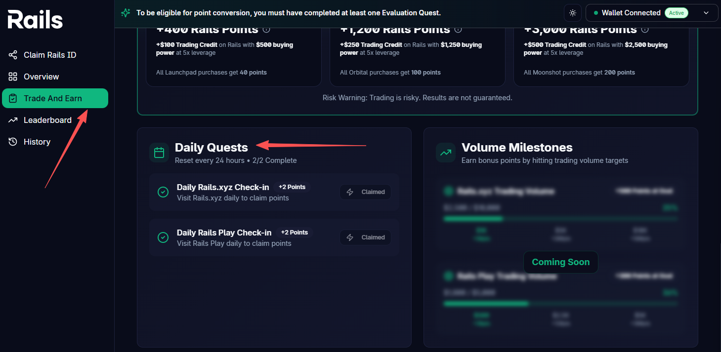 STEP 2. 領取 Rails ID 後,完成平台中的社交任務。