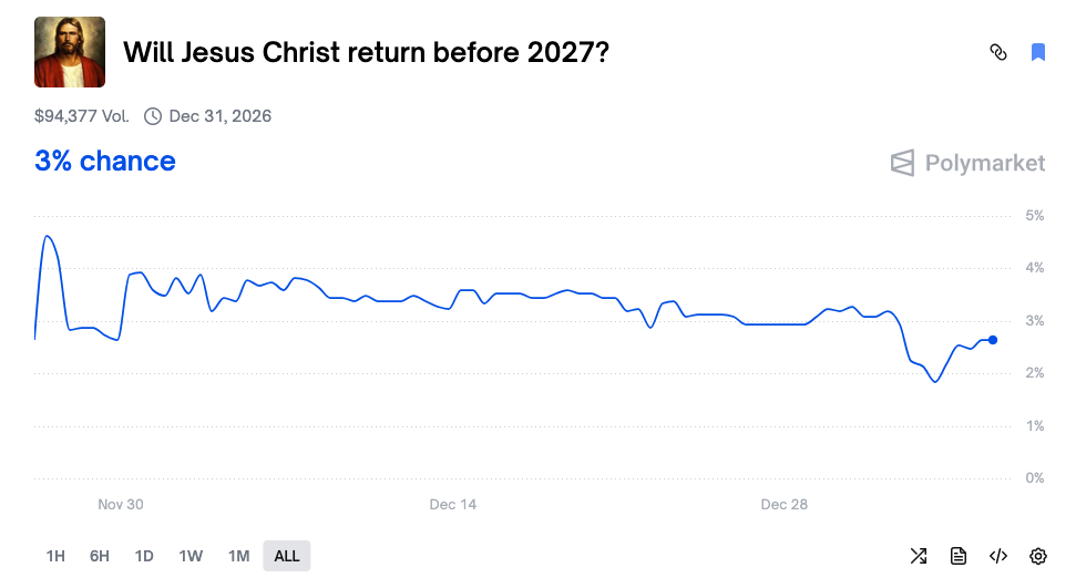 - 事件合約連結:https://polymarket.com/event/will-jesus-christ-return-before-2027?tid=1767609729629