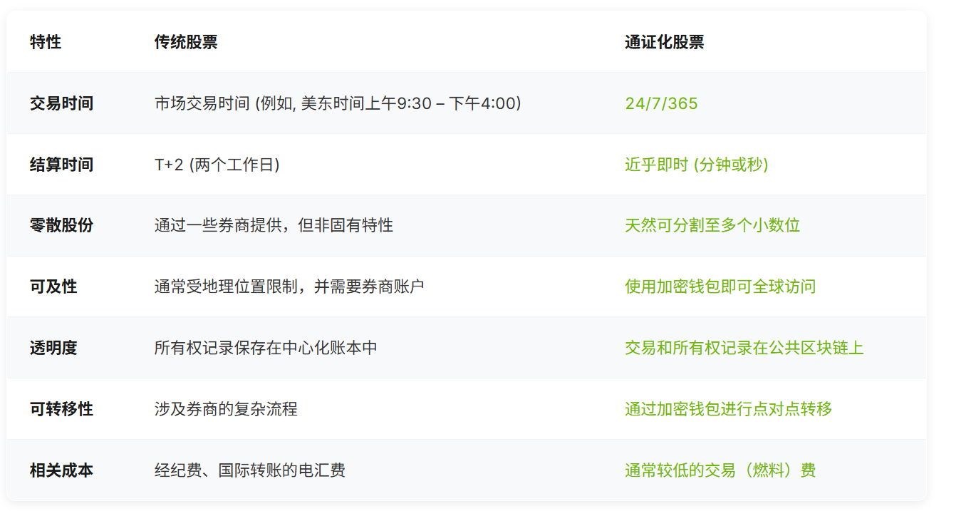 为了充分领会这一创新,将通证化股票与其传统对应物直接比较会很有帮助。