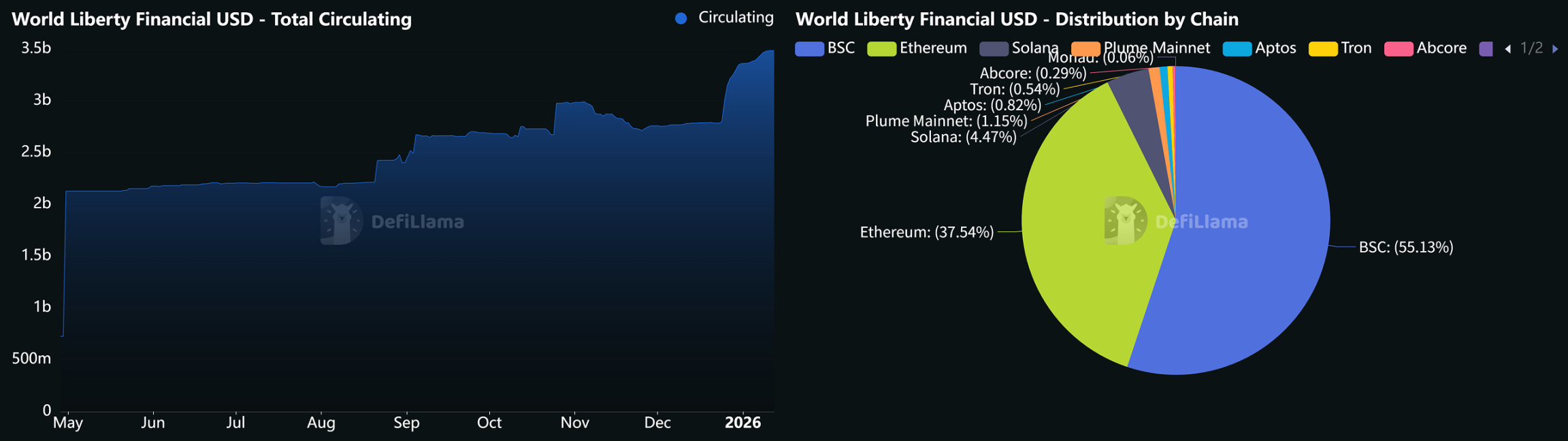 USD1 總市值曲線及各鏈佔比 | 圖源:DeFiLlama