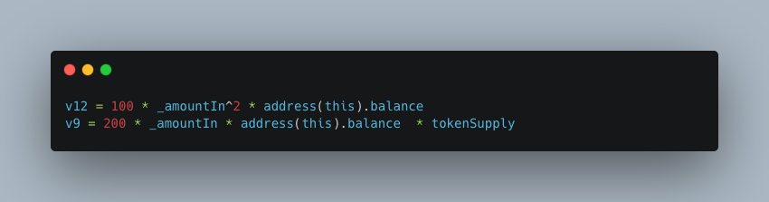透過上述分析,攻擊者的攻擊思路是透過輸入巨大的 _amountIn ,使 v12 + v9 溢位成一個很小的值,最後使(v12 + v9) / v6 == 0。