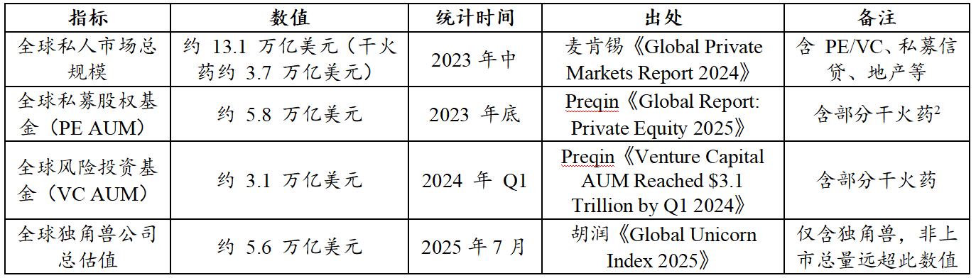 表 2:全球私人市場與獨角獸估值的關鍵指標統計表