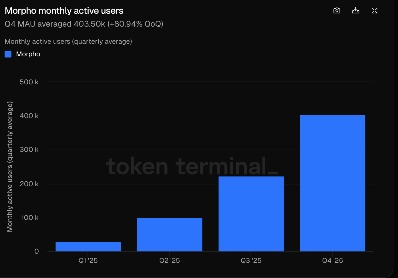 雖然 Morpho 當前 TVL 和活躍貸款規模仍不及 Aave,但用戶增速已使其成為借貸賽道裡最猛的「黑馬」之一。尤其在 2025 年整個 DeFi 賽道普遍承壓、經歷陣痛的背景下,Morpho 的表現可以算是實現逆勢高增長,足以證明其產品模式經受住了市場考驗。而在熊市中能持續吸納資金和用戶的協議,往往在下一輪週期具備更強的爆發力。