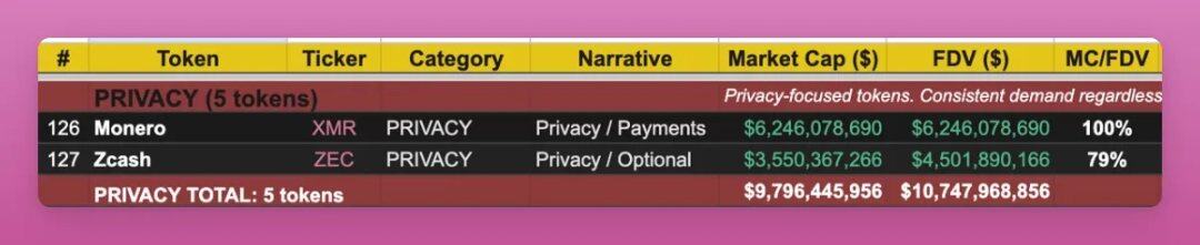 隱私代幣(2 個,總市值 97 億美元)