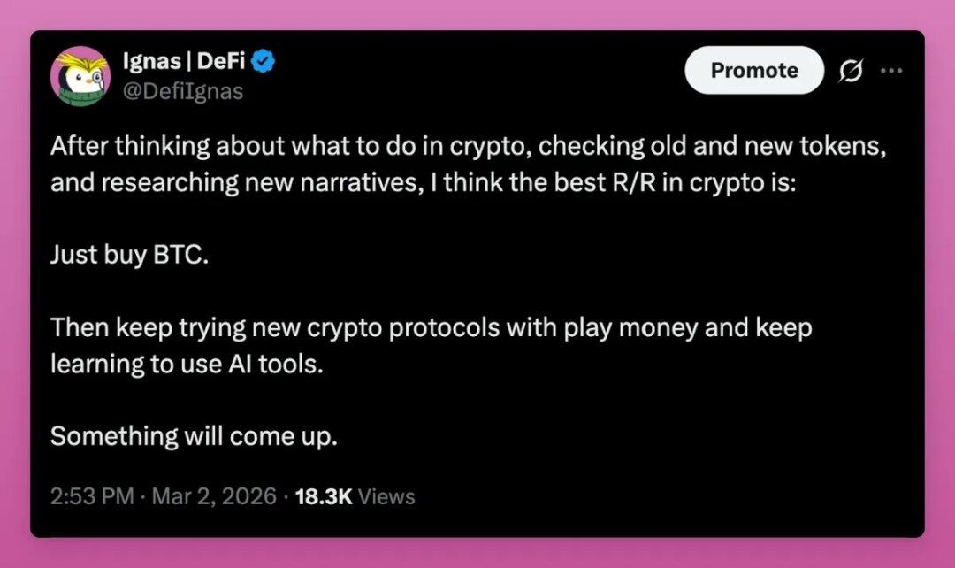 在反覆思考加密領域該怎麼做、檢視新舊代幣、研究新敘事之後,我認為加密世界裡風險收益比(R/R)最優的選擇是: