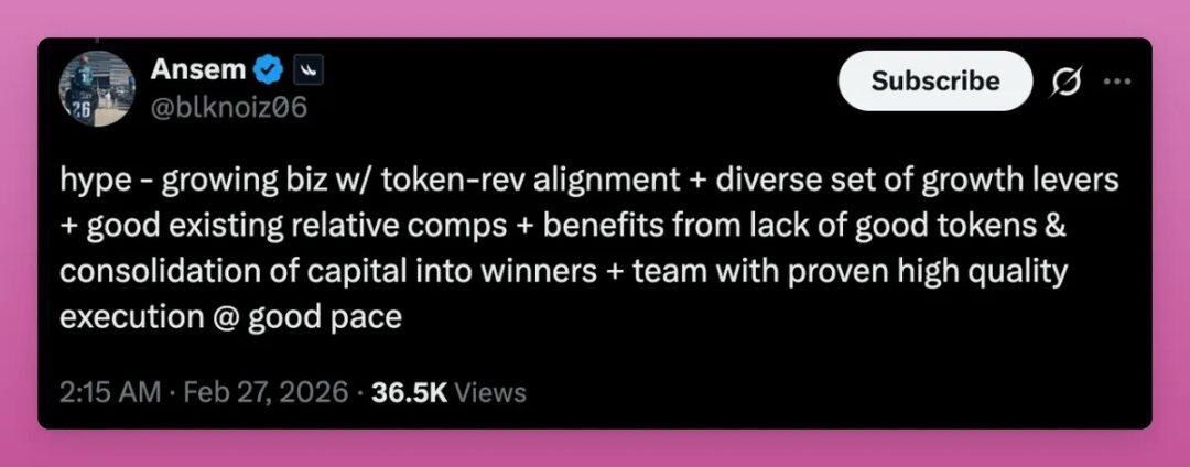 Ansem 的推文很好地總結了 HYPE 的投資理念:
