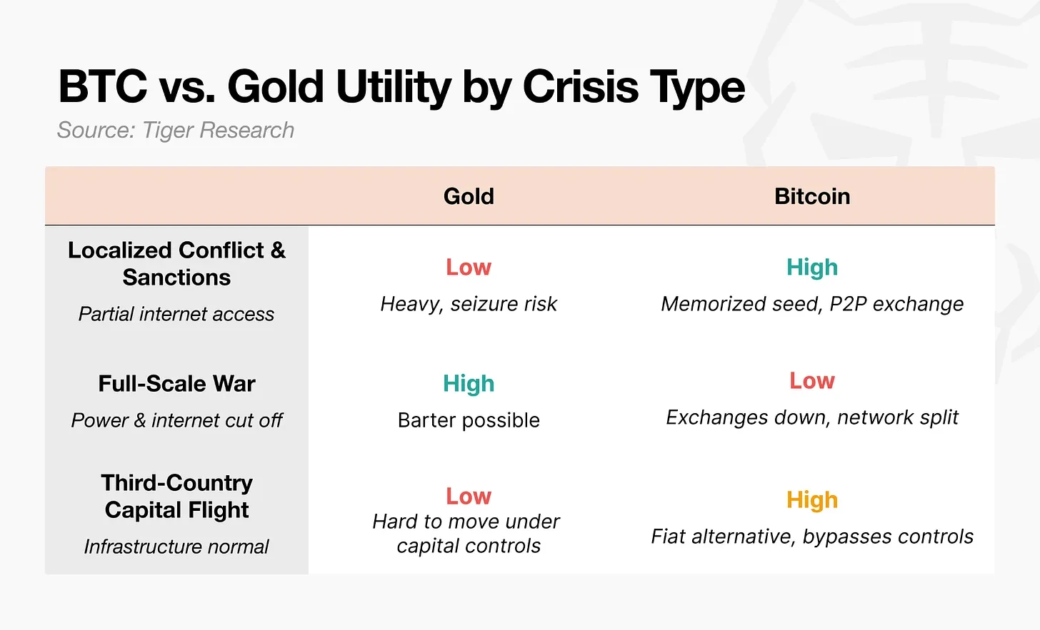 Tiger Research:地緣危機下暴跌的比特幣還能稱為「數位黃金」嗎?