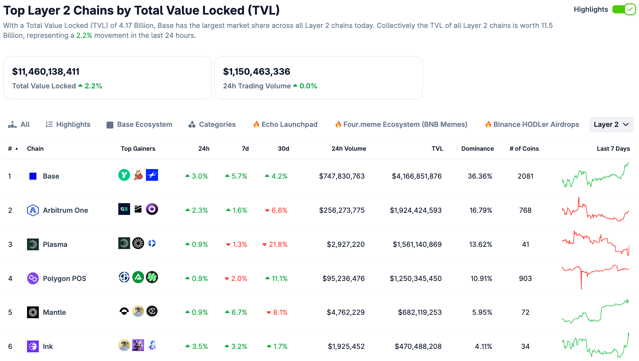數據來源:CoinGecko, https://www.coingecko.com/en/chains/layer-2